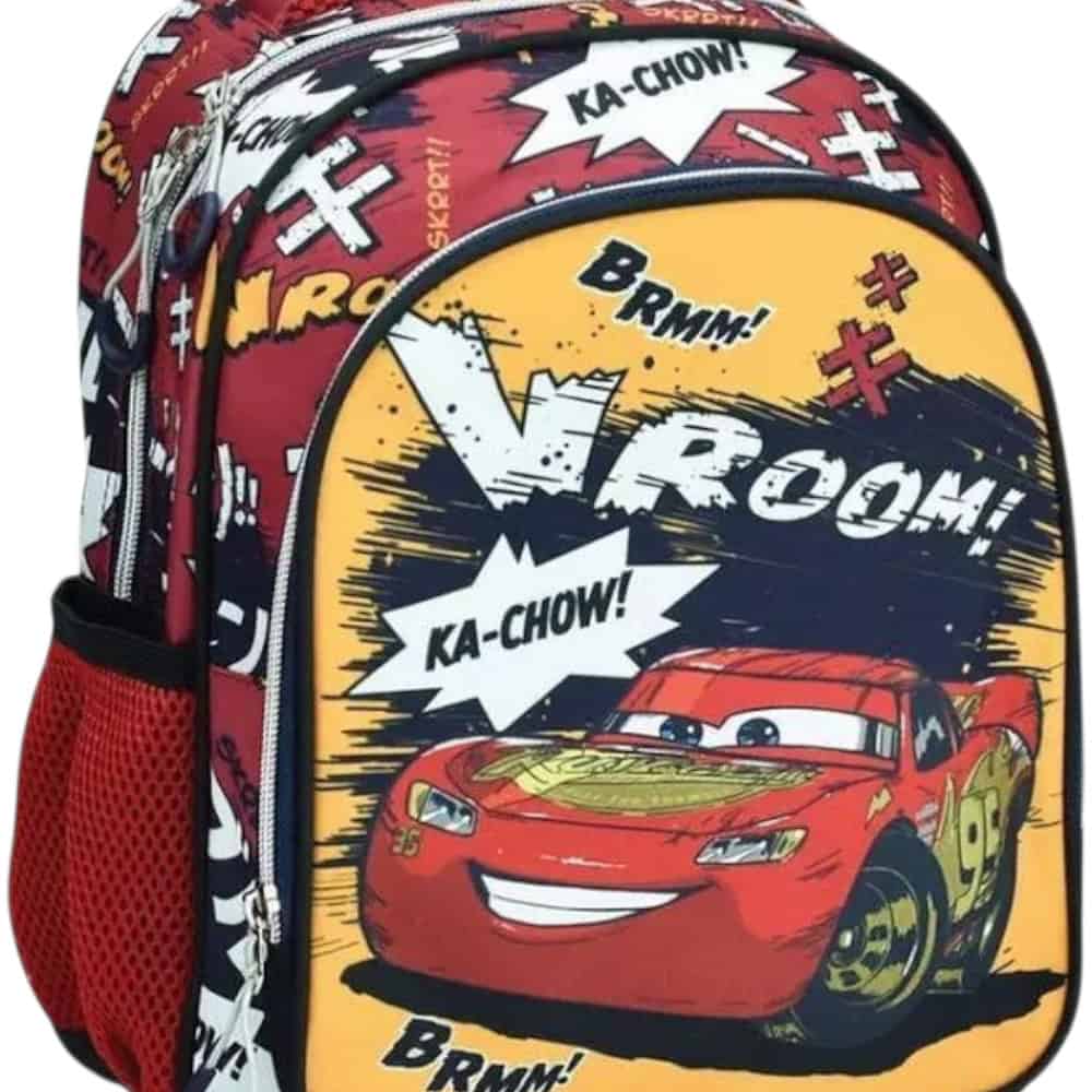 Έτοιμοι; VROOOM! Με την Cars Τσάντα Νηπιαγωγείου – Με Σετ Γραφής Ka-Chow! ο μικρός οδηγός ξεκινά το μάθημα σαν πίστα. Ελαφριά τσάντα πλάτης με δύο θήκες, πλαϊνή θέση για παγούρι, δυνατά φερμουάρ και εκτύπωση Lightning McQueen που λάμπει! Μαζί το Σετ Γραφής Cars για να γράφει «μπρρμμ» ιδέες σε κάθε σελίδα. 😄✏️