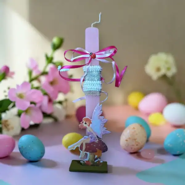 Η λαμπάδα είναι χειροποίητη και κατασκευασμένη με προσοχή στη λεπτομέρεια, συνεχίζοντας την ελληνική πασχαλινή παράδοση.