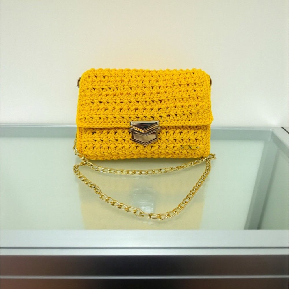 Χειροποίητη Πλεκτή Κίτρινη Τσάντα