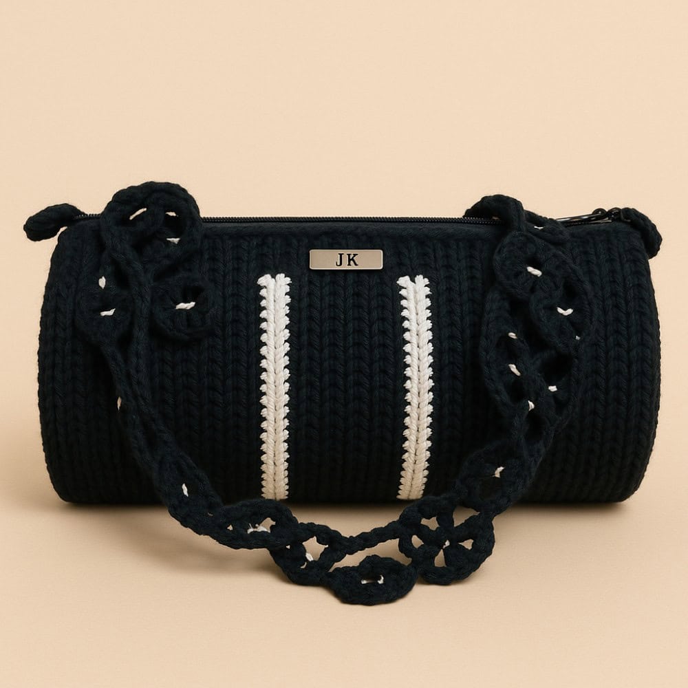 🖤 Απόκτησε τη Midnight Bloom, τη νέα πλεκτή τσάντα του OneForAlls που συνδυάζει τέχνη και στυλ.
