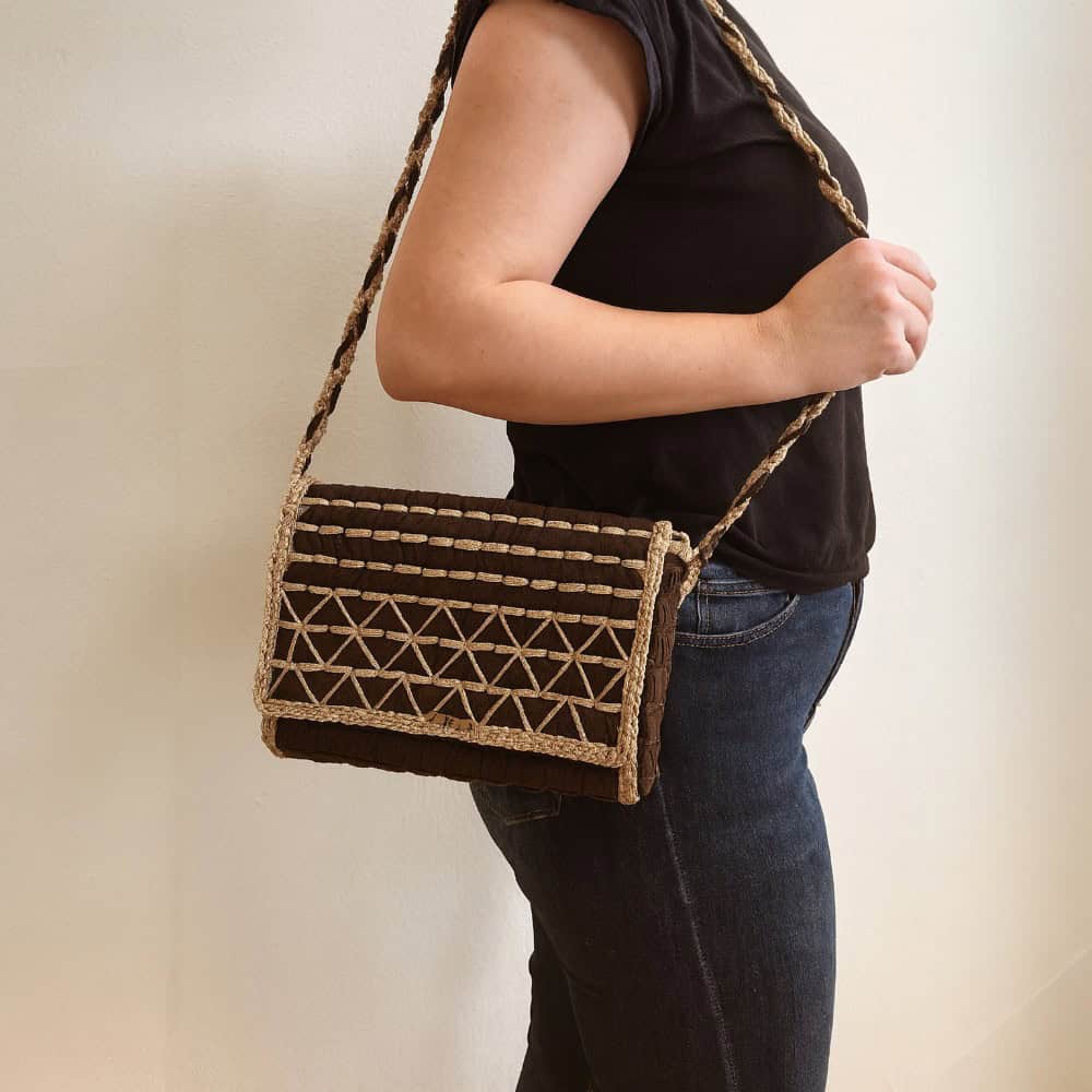 Με μοναδικό γεωμετρικό σχέδιο σε γήινες αποχρώσεις και χειροποίητο πλεκτό λουρί, αποτελεί σύμβολο απλότητας και στυλ.