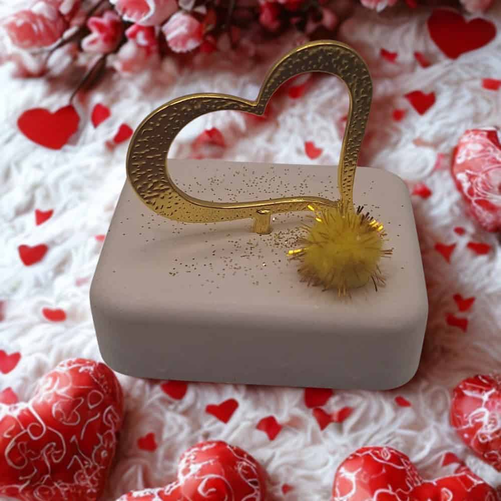 Διακοσμητική Χρυσή Καρδιά σε Βάση Κεραμικής Πορσελάνης – Δώρο Αγίου Βαλεντίνου