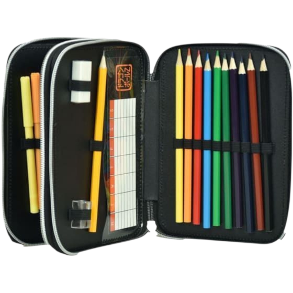 Κασετίνα 21 × 14 × 5 cm • διπλό άνοιγμα • 40 σχολικά είδη