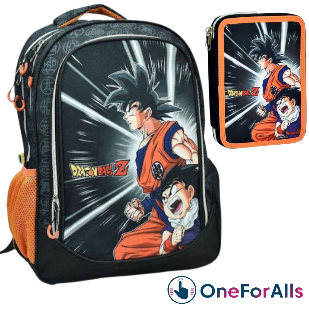 | ⚡ Super Saiyan Power! | Το Σχολικό Σετ Δημοτικού Dragon Ball Super  σε καλεί να γεμίσεις το προαύλιο με ενέργεια Ki! Περιλαμβάνει τσάντα πλάτης Α4 με Goku σε μάχιμη στάση και γεμάτη κασετίνα 40 τεμαχίων (μαρκαδόροι, ξυλομπογιές, στιλό, χάρακας κ.ά.). Η τσάντα έχει δύο μεγάλες θήκες, πορτοκαλί πλαϊνά δίχτυα για παγουρίνο και ανατομική πλάτη που προστατεύει τους ώμους. Τα neon πορτοκαλί φερμουάρ “ξυπνούν” το outfit, ενώ το ύφασμα 600D καθαρίζει μ’ ένα πέρασμα – ώστε να προπονείσαι για το επόμενο… τουρνουά πολεμικών τεχνών! |