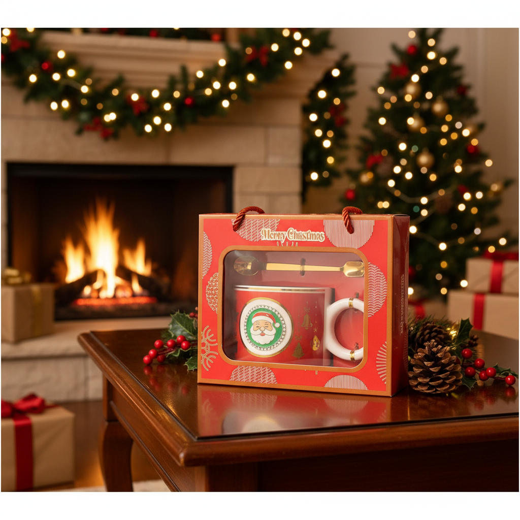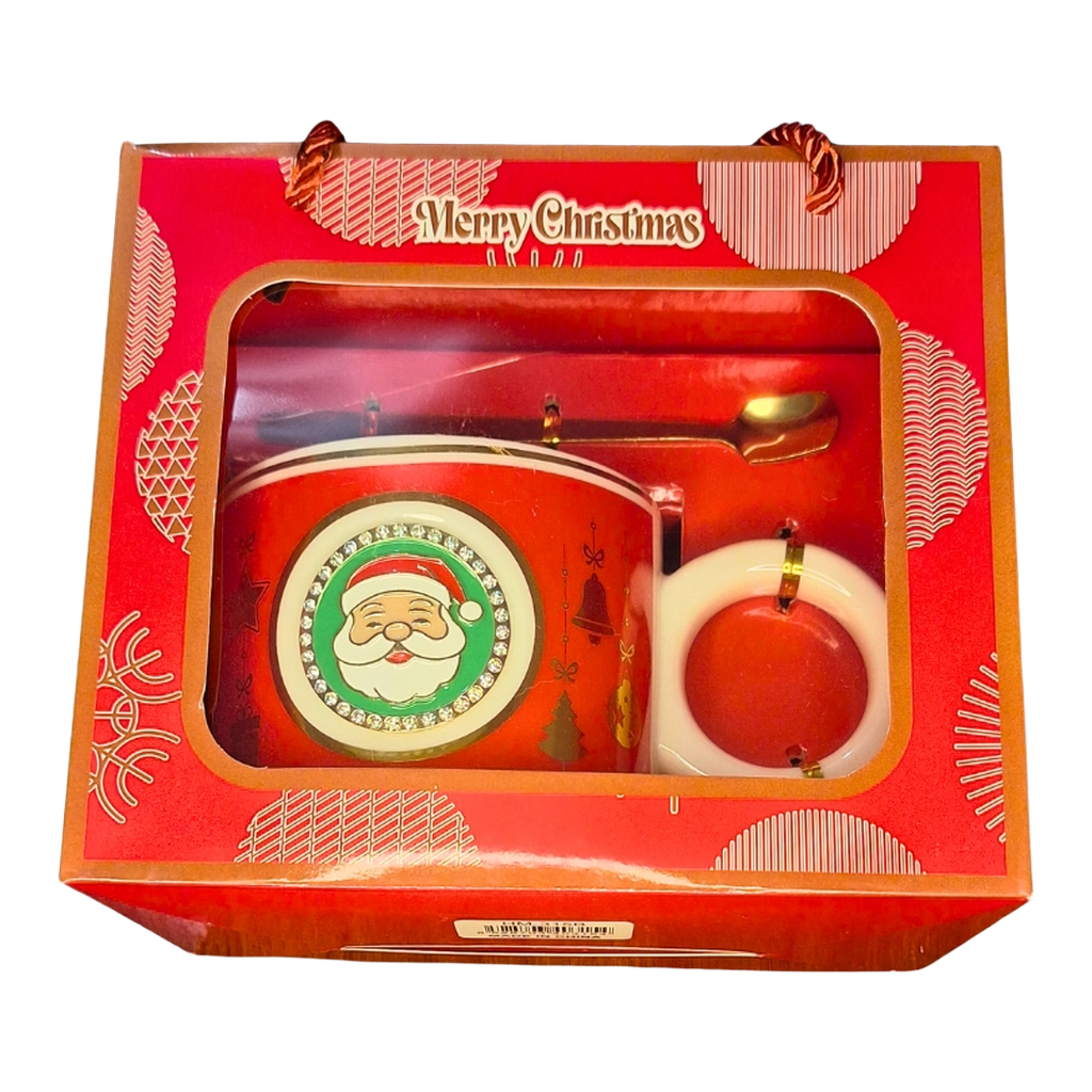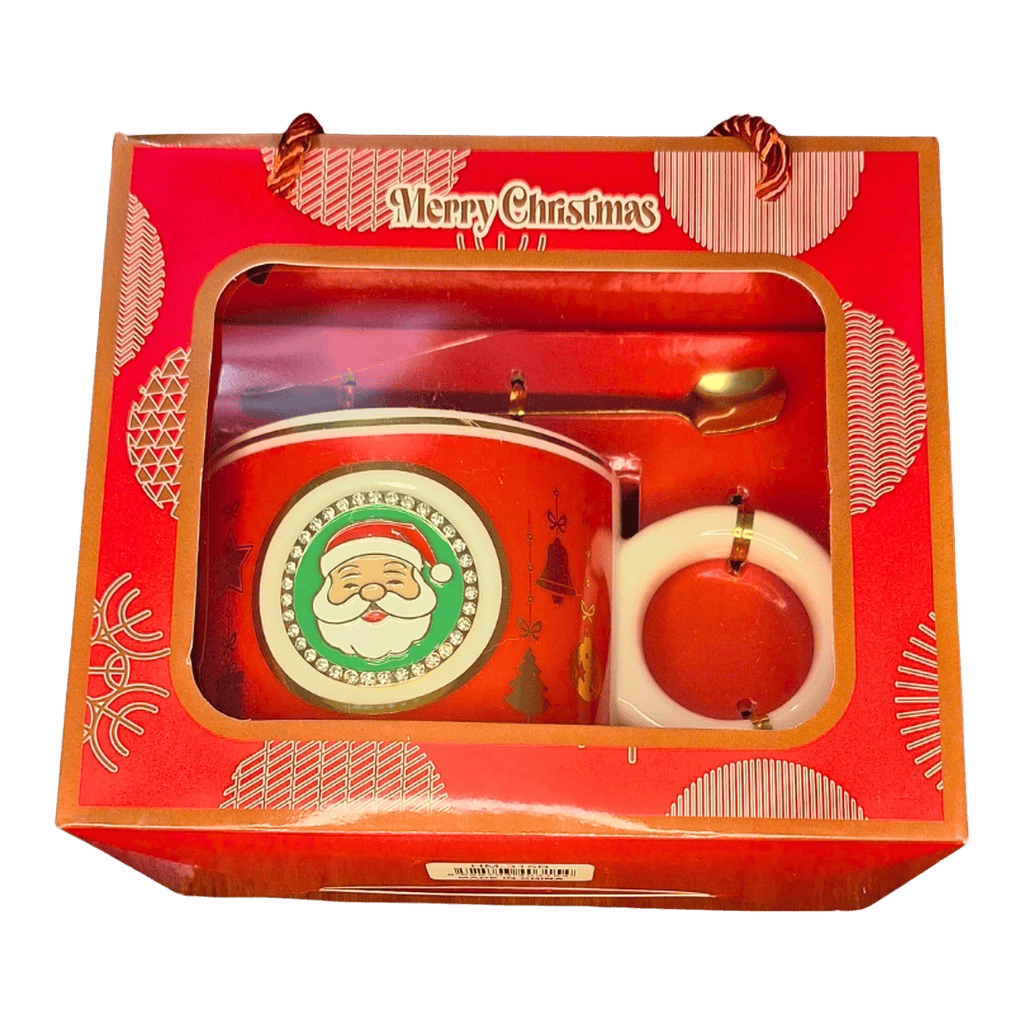 Η Κόκκινη Χριστουγεννιάτικη Κούπα Άγιος Βασίλης φέρνει παιχνιδιάρικη γιορτινή ενέργεια σε κάθε στιγμή, με χαρούμενο Santa design, χρυσαφί κουτάλι και festive συσκευασία που την καθιστά έτοιμη για δώρο