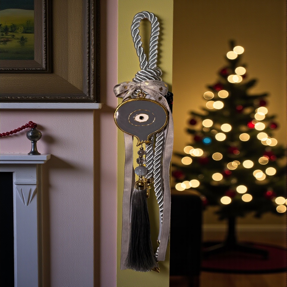 Κρεμαστό Γούρι Μάτι Γκρι 2026 με Φούντα & Μεταλλικές Λεπτομέρειες