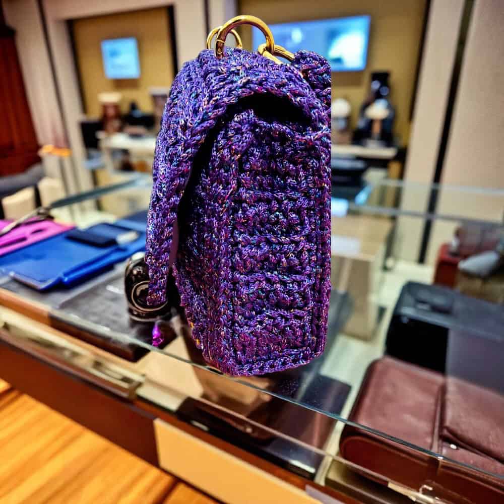 Η χειροποίητη πλεκτή τσάντα Violet Charm συνδυάζει κομψότητα και ζωντάνια.