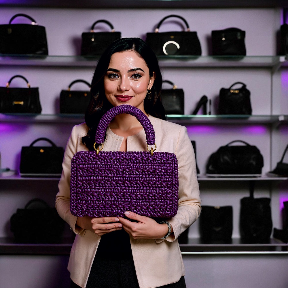 Φτιαγμένη στο χέρι, με πλέξη από ανθεκτικό νήμα σε βαθύ μωβ χρώμα, αποπνέει θηλυκότητα, πολυτέλεια και χαρακτήρα.
