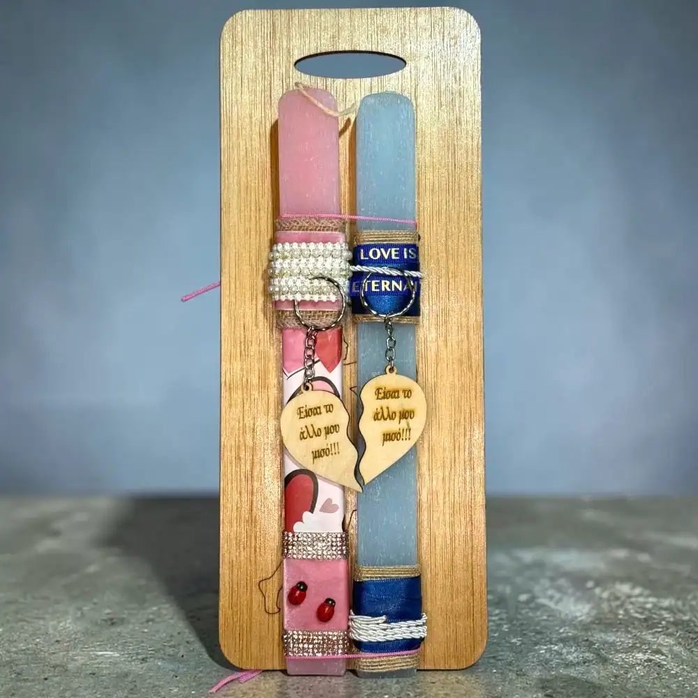 Σετ Αρωματικές Χειροποίητες Πασχαλινές Λαμπάδες Ζευγάρι «Είσαι το άλλο μου μισό»