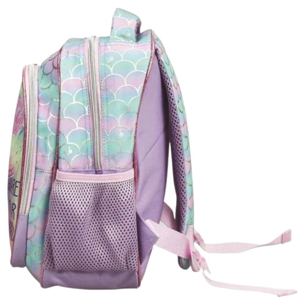 | 🌈 Γκλίτερ… από την ακτή μέχρι το θρανίο! | Το Barbie Γοργόνα μαγεύει με παστέλ ουράνιο τόξο & λέπια γοργόνας: • Τσάντα πλάτης νηπιαγωγείου με δύο θήκες, μπροστινό glitter pocket & πλαϊνά δίχτυα για παγουρίνο. • Κασετίνα barrel “Share Your Sparkle” για μαρκαδόρους & κοχύλια-ιδέες.Ανατομική πλάτη, ύφασμα 600D και φερμουάρ σε ροζ κοχύλι – γιατί κάθε μικρή γοργόνα χρειάζεται το δικό της under-the-sea kit! |