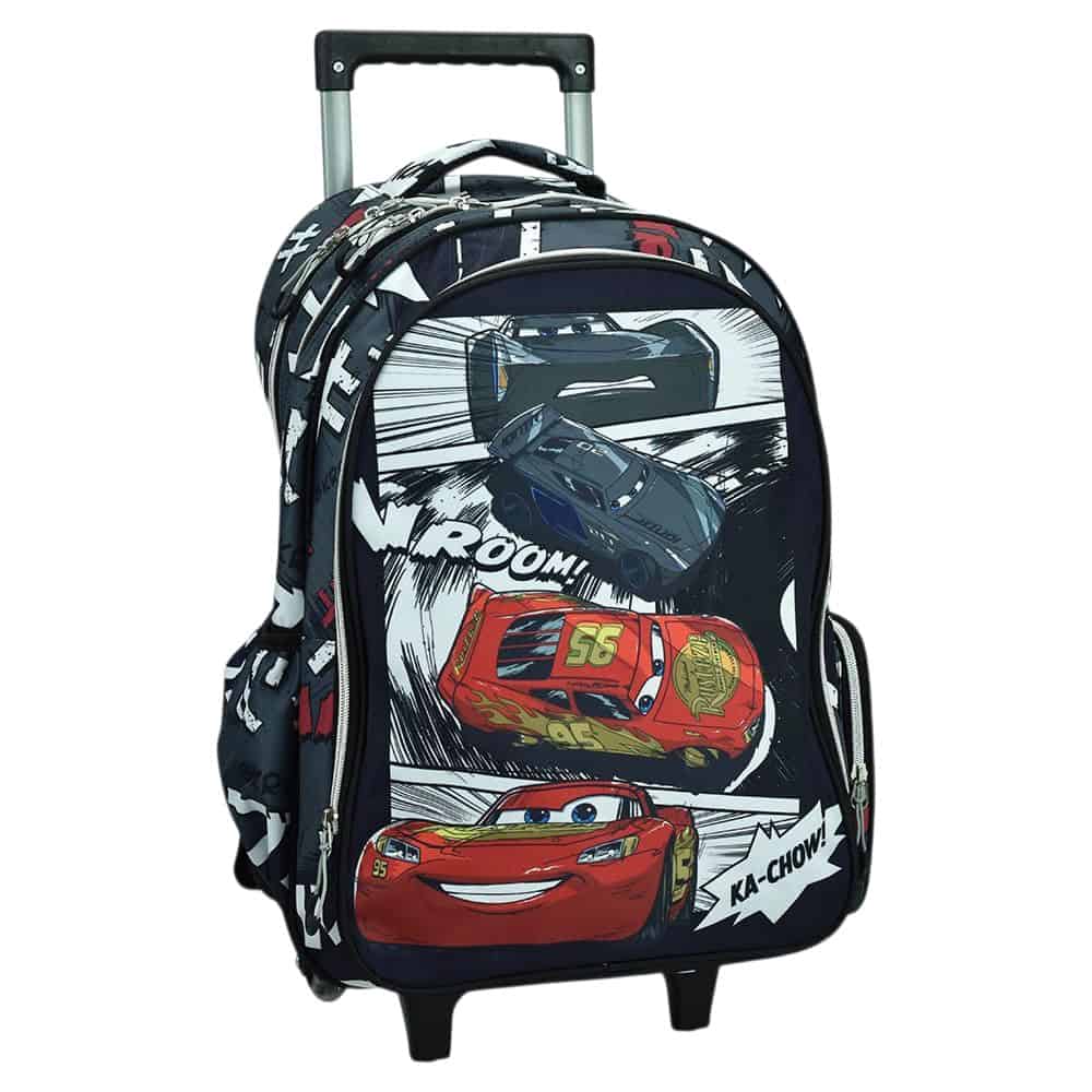Σχολική τσάντα τρολεϊ Cars με ροδάκια, 2 θήκες A4 & ανατομική πλάτη. Δωρεάν σετ γραφής 5 τεμ. – μπες στην πίστα του σχολείου με ταχύτητα!
