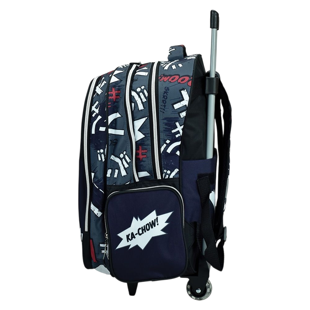| 🏎️ Turbo Power! | Η τσάντα Cars φέρνει κόμικ γραφικά με Lightning McQueen, δύο θήκες A4 για βιβλία & τετράδια και μπλε τρολεϊ που κυλά αθόρυβα 🛞. Στις σκάλες, κλικ-κλικ και γίνεται backpack! Η ανατομική πλάτη κρατά ώμους χαρούμενους, ενώ το δωρεάν Cars Σχολικό Σέτ✏️🔴 (μολύβι, γόμα, ξύστρα, χάρακας, σελιδοδείκτες) προσθέτει έξτρα… ιπποδύναμη στο θρανίο. Με ύφασμα 600D που σκουπίζεται στο λεπτό, είσαι έτοιμος να φωνάξεις «Ka-Chow!» κάθε πρωί! |